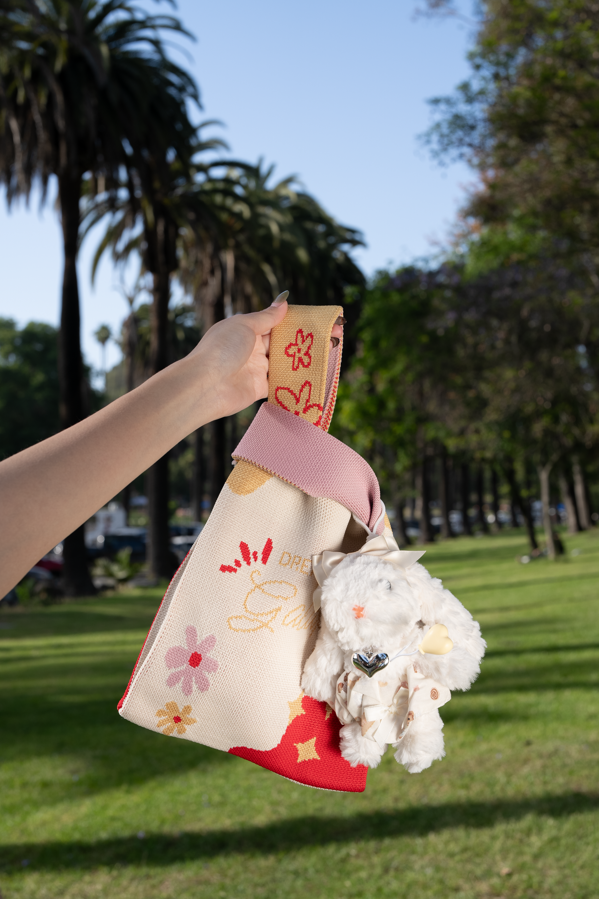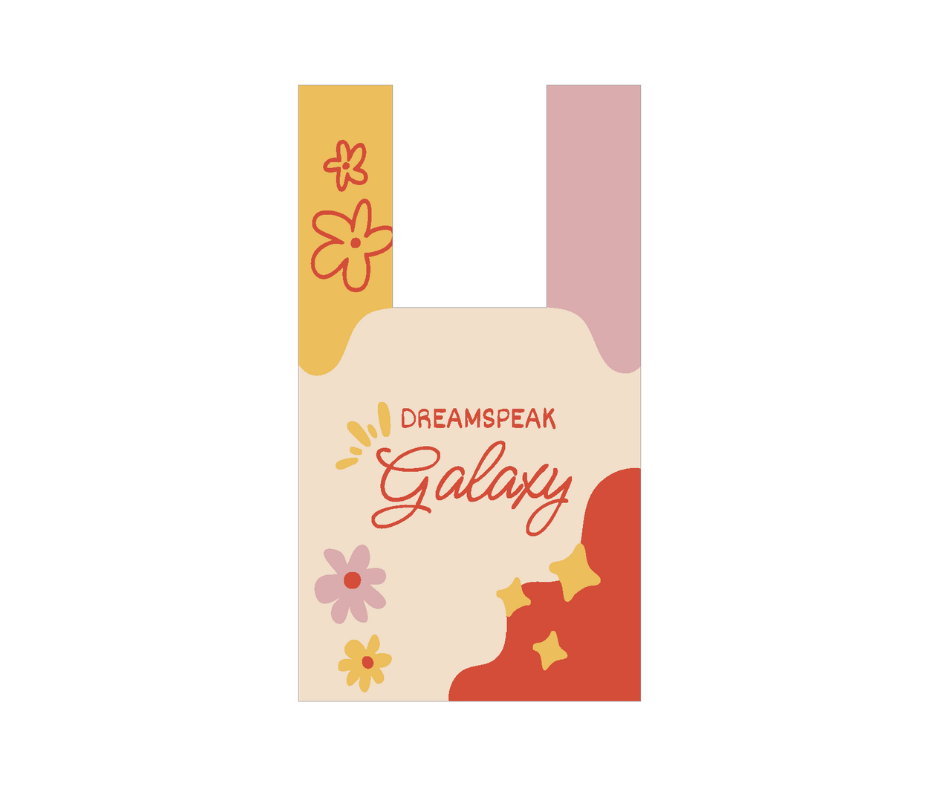 Part of the DreamSpeak Galaxy packaging collection, the DreamSpeak Galaxy shopper tote is an original creation developed by the brand’s in-house design team and has become a hallmark of its playful, cosmic-garden aesthetic. Designed to hold and present our signature knit mini bags, it’s printed with a vibrant medley of abstract floral and star motifs across seven pastel colorways, evoking a whimsical blend of nature and starlight. Emblazoned with the “DreamSpeak Galaxy” logo on the front, the medium tote exemplifies the brand’s commitment to quality craftsmanship and eco-conscious design, and may be carried by hand or looped over the wrist, as well as paired with matching gift sleeves and labels for a fully immersive unboxing experience.